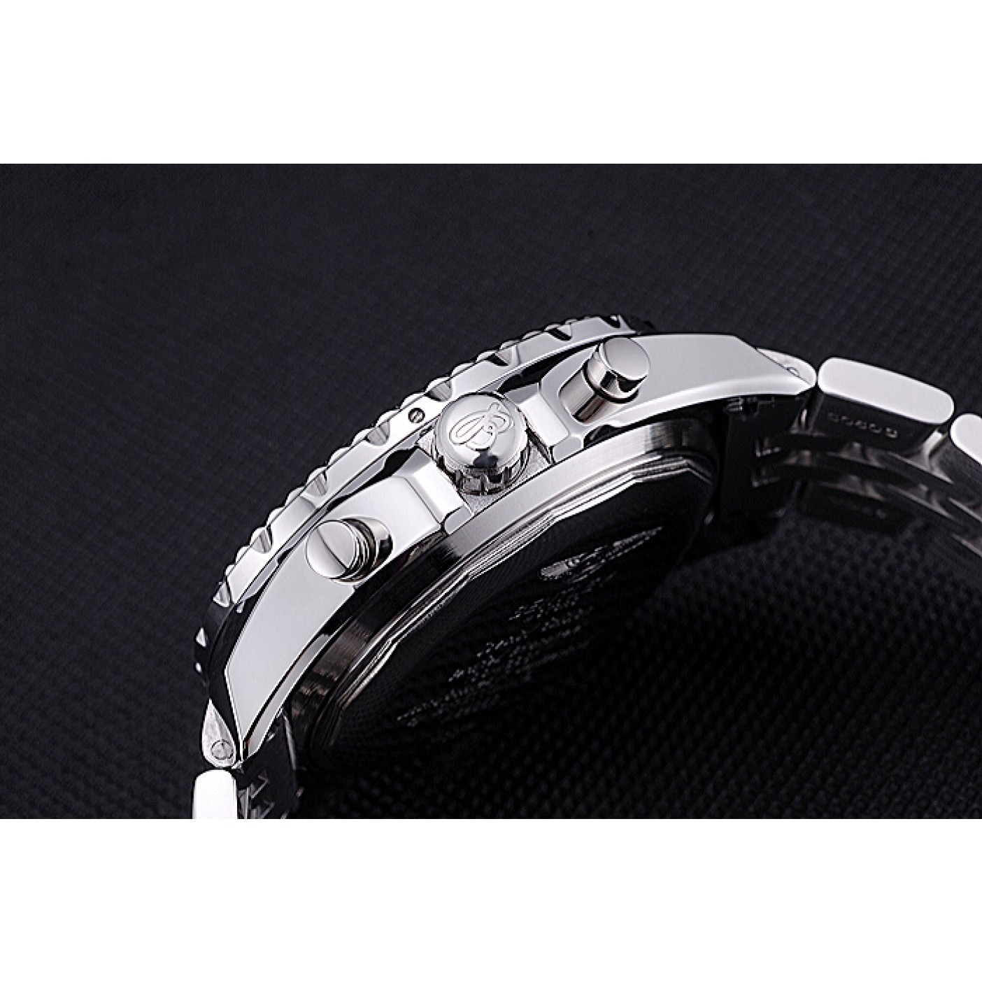 Crown Breitling logo engraved polished stainless steel cutwork crown with a small round push-button crown on either side of it