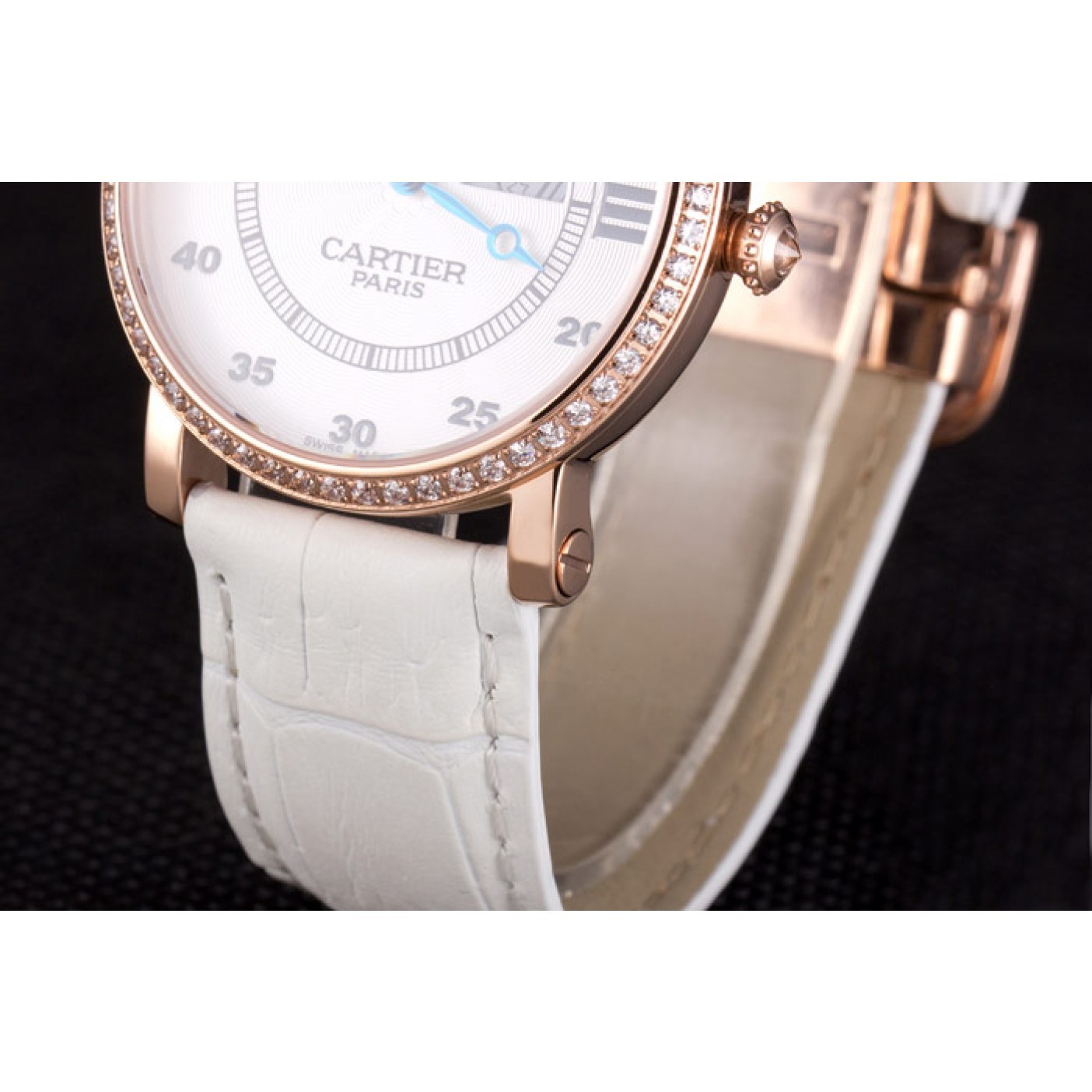 Cartier Moonphase Rose Gold Watch with White Leather Band ct254 621373