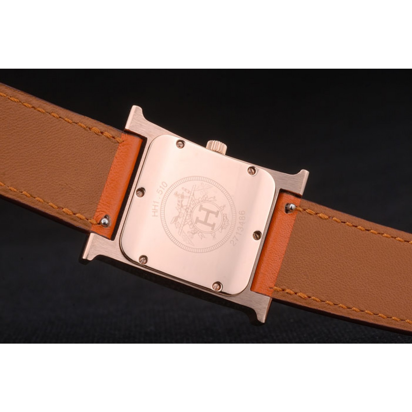 You're reviewing: Hermes Heure H Rose Gold Bezel Orange Leather Strap White Dial 80234