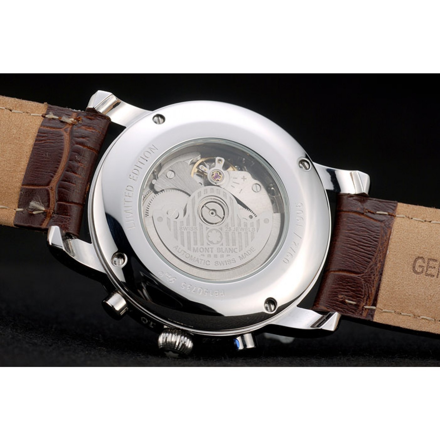 Back Polished stainless steel screwed down back with transparent centre and MontBlanc engraving and logo
