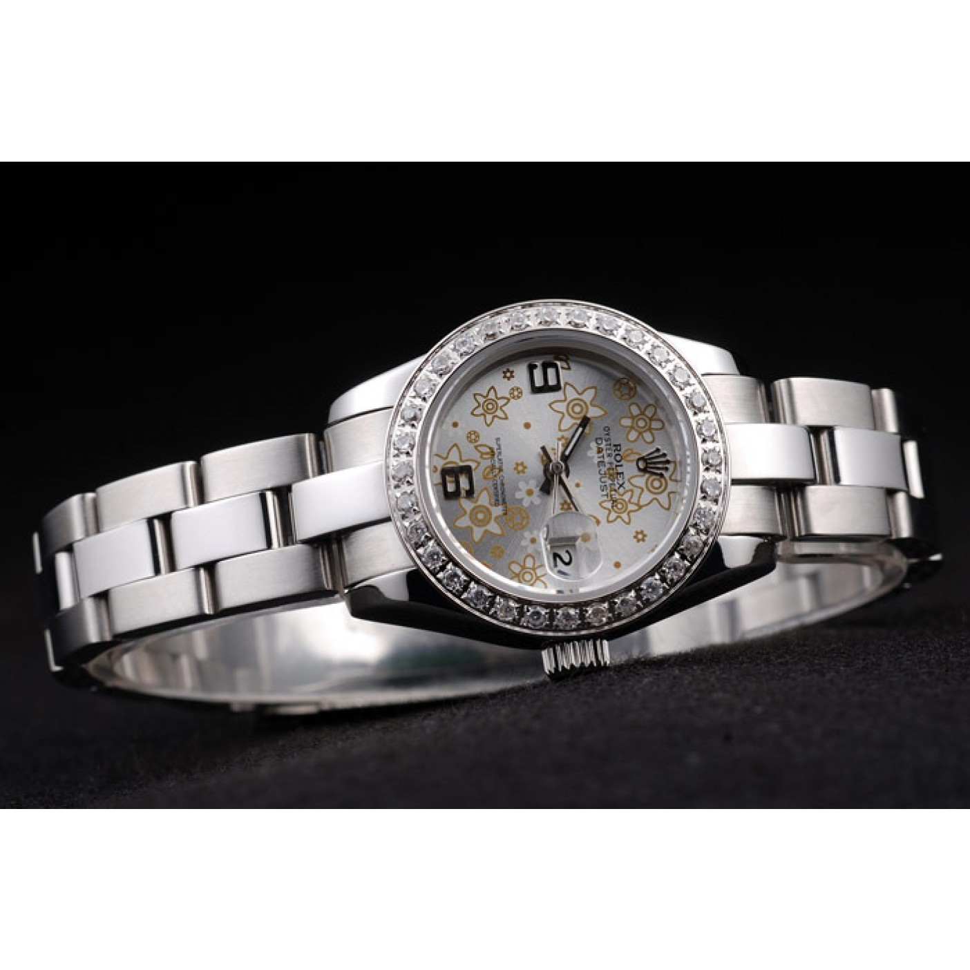 Rolex Datejust Polished Stainless Steel Silver Flowers Dial Diamond Plated 98082